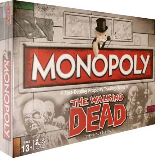 Несмотря на постапокалиптическую обстановку, The Walking Dead Comic Survival Edition Monopoly Game предлагает классический игровой процесс в жанре "монополия". Игроки соперничают за первоклассную недвижимость и ресурсы, которые будут поддерживать их жизнь, а затем должны укрепить их. Включает в себя 6 жетонов на тему "нежити"! Любимая в мире семейная настольная игра представляет вам еще одно захватывающее издание Монополии - Ходячие мертвецы. Выберите свой любимый жетон, включая Rick's Hat или Lucille, путешествуйте по любимым сайтам и копите состояния. Перейдите в безопасную зону Александрии, колонию на вершине холма или королевство - будете ли вы должны арендовать или получать награды? Инвестируйте в стены и сторожевые башни.