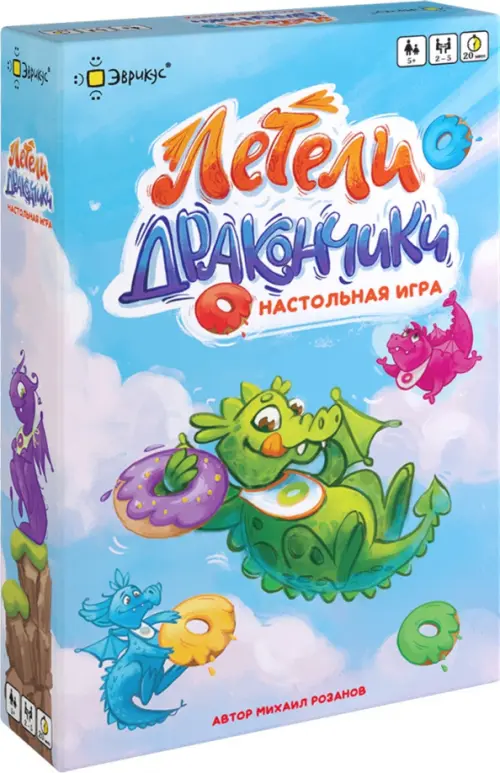"Летели дракончики" - это семейная игра-гонка, где вам предстоит привести к финишу несколько дракончиков по вашей карточке-заданию. Замедляйте или ускоряйте летающих дракончиков, подкармливая их любимыми лакомствами. Но помните: чем больше пончиков слопает дракончик, тем сильнее замедлится его полёт!