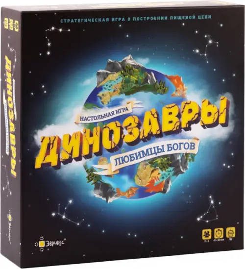 «Динозавры любимцы богов» - игра, в которой нужно построить процветающую экосистему, где во главе стоят динозавры. Ход за ходом игрокам предстоит постепенно заселять свои земли хищниками: орлами и тиграми, чтобы кормить динозавров; и мелкими животными, чтобы кормить хищников. Чем больше съедят динозавры, тем больше яиц отложат, и тем больше победных очков будет. Но осторожно-не всем хватит еды и некоторые виды животных исчезнут, что повлияет на хрупкий баланс жизни.