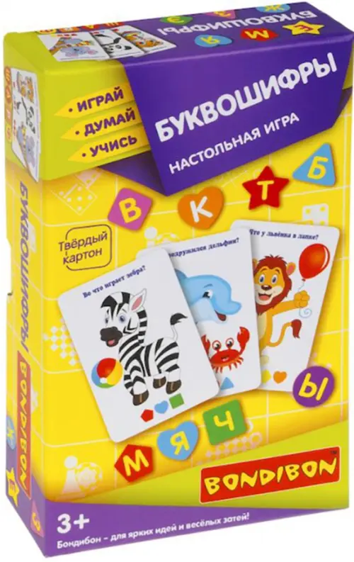 Головоломка БУКВОШИФРЫ от Bondibon закрепляет у детей навыки словосложения, правильного произношения и осознанного чтения. Настольная игра способствует развитию логического мышления, внимания, формированию цветовосприятия.