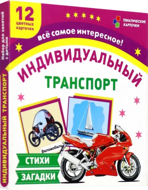 Индивидуальный транспорт. 12 цветных карточек. Стихи, загадки
