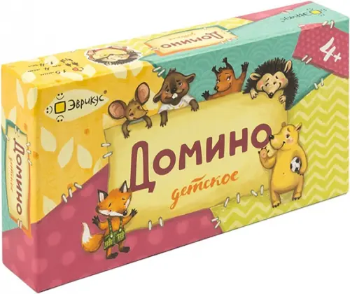Домино детское от издательства Эврикус - красочная развивающая игра с толстыми картонными фишками. Вместо точек на фишках изображены зверята.