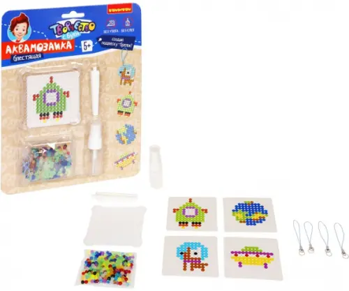 В комплекте: аквабусины - 350 шт, пинцет, схемы сборки, основа, распылитель для воды, подвески для брелоков. Рекомендуемый возраст 5+.