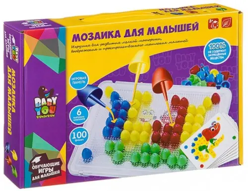 Мозаика для малышей, 6 карточек, 100 фишек