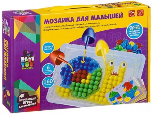 Мозаика для малышей, 6 карточек, 160 фишек