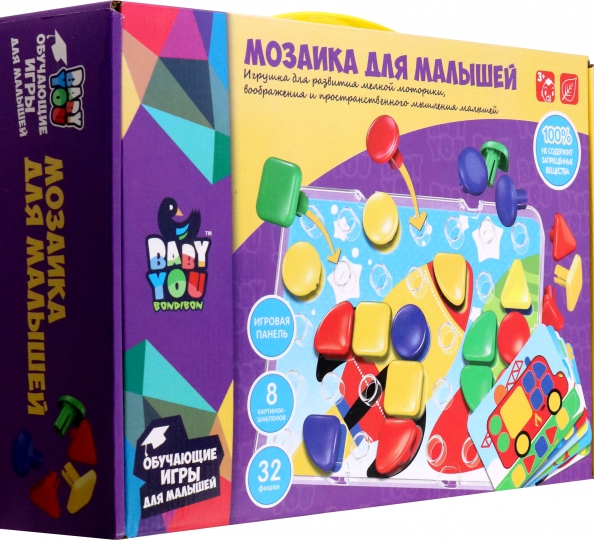 Благодаря крупным деталям яркая разноцветная мозаика легко собирается и подойдет малышам от 3-х лет. Вставляя фишки в ячейки нужного цвета на игровом поле, ребенок соберет красочную объемную картинку. Большое разнообразие картинок-шаблонов позволит надолго сохранить интерес ребенка к мозаике.
