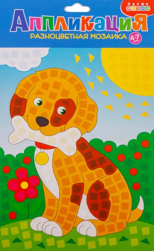 Разноцветная мозаика - это оригинальная и яркая объёмная аппликация. Детали мозаики выполнены из мягкого пластика ЭВА с переливающимся декоративным покрытием. Ребёнок с удовольствием украсит симпатичного щенка, аккуратно отделяя нужные детали и приклеивая их на картинку. Когда картинка будет готова отрежьте верхнюю часть и полюбуйтесь проделанной работой!