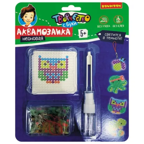 Неоновая аквамозаика - это новый вид аквамозаики, которая светится в темноте! Еще больше волшебства! Разложите цветные шарики по трафарету, слегка смочите их водой, дайте им высохнуть и готовая фигурка из ярких бусин застынет. "Зарядите" готовую фигурку под искусственным источником света или на солнце в течение некоторого времени и она будет светиться! Проверьте в темноте!