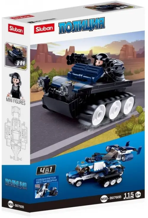 Конструктор Sluban из серии "Полиция" позволит ребенку собственными руками собрать модель полицейского вездехода. В комплект входит 1 фигурка полицейского. Простое и надежное соединение деталей разных размеров и форм между собой обеспечат специальные крепления. Во время игры ребенок сможет задействовать свою фантазию и придумать интересные сценарии. В процессе сборки и игры с готовой моделью юный конструктор будет развивать мелкую моторику рук, пространственное мышление, внимательность и усидчивость.