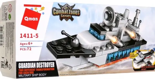 Из каждого набора конструктора от производителя QMAN из серии "Combat Zones" ребенку поочередно сможет собрать собственными руками 2 модели военной техники. Это может быть военный корабль или боевой самолет. Простое и надежное соединение деталей разных размеров и форм между собой обеспечат специальные крепления. Во время игры ребенок сможет задействовать свою фантазию и придумать интересные сценарии. В процессе сборки и игры с готовой моделью юный конструктор будет развивать мелкую моторику рук, пространственное мышление, внимательность и усидчивость.