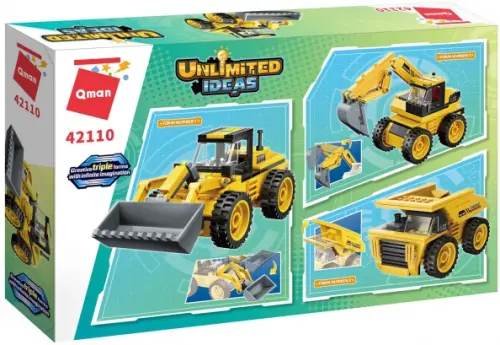 Из конструктора 3 в 1 от бренда QMAN из серии «Unlimited Ideas» ребенок может поочередно собрать собственными руками фигурки трех строительных машинки: трактор или экскаватор или самосвал. Простое и надежное соединение деталей разных размеров и форм между собой обеспечат специальные крепления. Во время игры ребенок сможет задействовать свою фантазию и придумать интересные сценарии. В процессе сборки и игры с готовой моделью юный конструктор будет развивать мелкую моторику рук, пространственное мышление, внимательность и усидчивость.