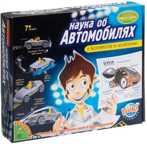 Научно-познавательный набор "Наука об автомобилях" поможет узнать, что дает машине энергию для движения, для чего нужны шины, что такое аэродинамика, почему очень важны и полезны ремень и подушка безопасности и многие другие очень нужные и интересные вещи. В наборе есть все детали для того, чтобы ребенок смог самостоятельно собрать макет автомобиля и провести интересные эксперименты. В инструкции подробно и доступно изложен принцип сборки макета, поэтому достаточно лишь соблюдать последовательность проведения опытов. Эксперименты с резиновой лентой, шинами, подушкой безопасности, аэродинамикой и т.д. помогут ребенку открыть для себя удивительный мир механики а также более глубоко и серьезно понять принципы безопасности нахождения в автомобиле!