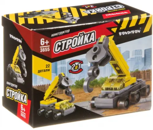 Конструктор 2 в 1. Стройка. Подъемный кран, 22 детали