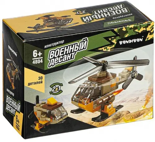 Конструктор 2 в 1. Военный десант. Вертолет, 30 деталей