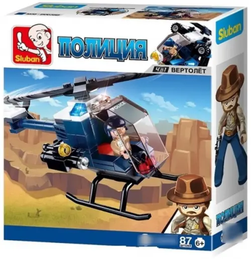Конструктор Sluban из серии "Полиция" позволит ребенку собственными руками собрать модель полицейского вертолета. В комплект входит 1 пилот, умело управляющий вертолетом. Для большей реалистичности, лопасти оснащены механизмом для вращения. Простое и надежное соединение деталей разных размеров и форм между собой обеспечат специальные крепления. Во время игры ребенок сможет задействовать свою фантазию и придумать интересные сценарии. В процессе сборки и игры с готовой моделью юный конструктор будет развивать мелкую моторику рук, пространственное мышление, внимательность и усидчивость.