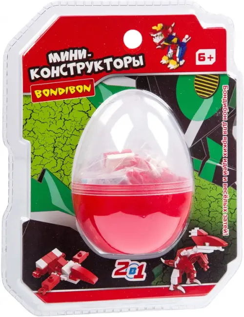 Мини-конструктор в красном яйце 2 в 1. Динозавр, 51 деталь