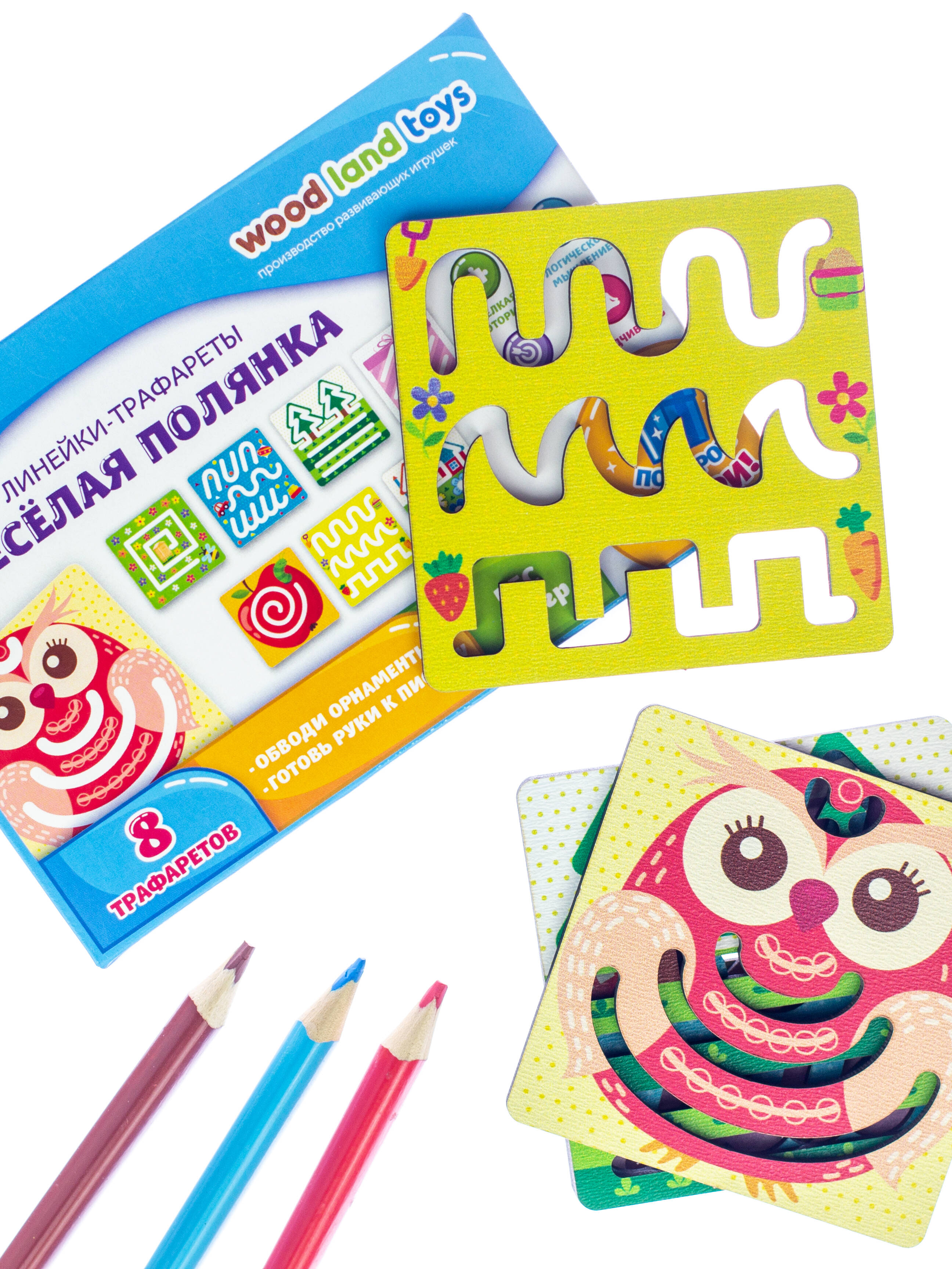 Набор Линеек-трафаретов - это удивительная развивающая игрушка для рисования. Игры с Линейками-трафаретами подготовят детские руки к письму, помогут в формировании красивого почерка. В деревянной коробочке ребенок найдет восемь красочных квадратных трафаретов с узорными прорезями. Занятия с линейками очень просты - ребенок может проводить по прорезям пальчиками или любыми пишущими принадлежностями. Линейки - трафареты займут ребенка на продолжительное время, разнообразят досуг и помогут в развитии логического мышления, воображения, памяти, тактильного и зрительного восприятия. Ваш малыш почувствует себя настоящим художником.
