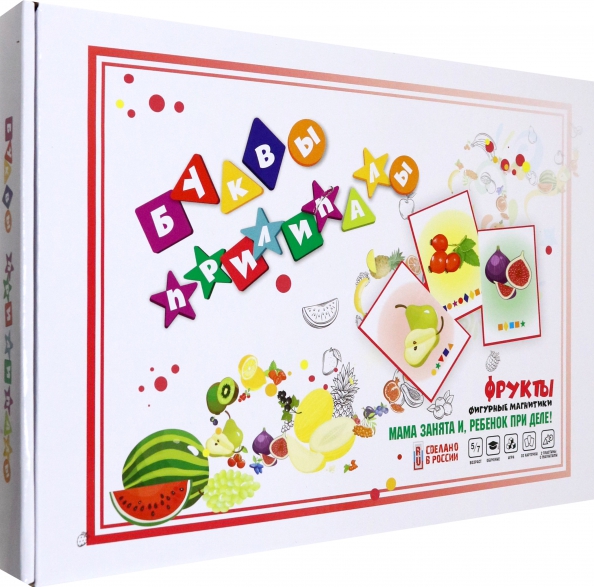 Буквы прилипалы. Фрукты. Магнитный набор для обучения букв и чтению