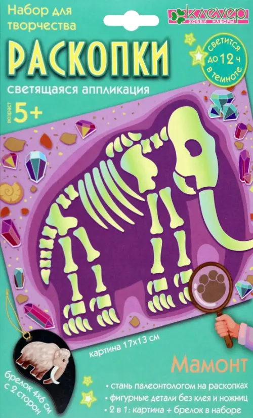 Набор «Раскопки. Мамонт» - находка для любознательных детей! Ребёнок старше 5 лет не только погрузится в творческий процесс создания картины и брелока, но и представит себя в роли палеонтолога, открывающего миру скелет ископаемого животного, собирая его по косточкам.