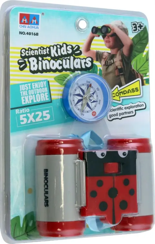 Игровой набор с биноклем, стилизованным под божью коровку, и компасом предназначен для любознательного юного исследователя. Ребенок будет учится ориентироваться на местности, используя компас и вести наблюдения, рассматривая с помощью бинокля предметы с 5-кратным увеличением. Привлекательный дизайн, надежная конструкция, легкий вес, мягкий шнурок для удобного размещения бинокля на шее позволят детям наслаждаться новыми открытиями и сделают их игры веселее и увлекательнее.