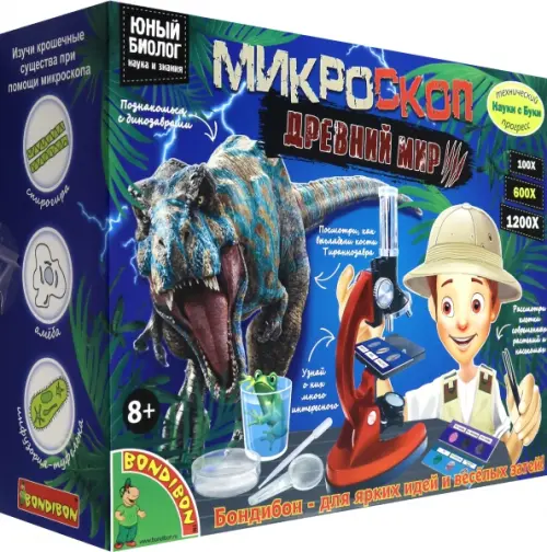 Детей интересует устройство всего живого на Земле, а ещё больший интерес вызывают к себе животные, которых уже давно не существует на нашей планете. Микроскоп обладает 100, 600 и 1200-кратным увеличением. Этот набор не обычный, он откроет ребёнку очень интересную область для научных исследований связанную с древним миром. Мы предлагаем перенестись в эпоху, когда на нашей планете существовали динозавры, древние растения и насекомые. Юные учёные при помощи микроскопа смогут изучить строение костей динозавров. Конечно, наши слайды с костями динозавров - это имитация, а как же иначе, ведь такой материал является настоящей находкой для палеонтологов, биологов и других ученых. Хранятся такие материалы в музеях и научных институтах по всему миру. Так же будет возможность изучить слайды с материалами растений и насекомых, которые тоже существуют с древних времён. Как известно, микроскоп - это прибор, открывающий многие тайны! Изучите его устройство и правила работы с прибором и приступайте к интереснейшим исследованиям.
