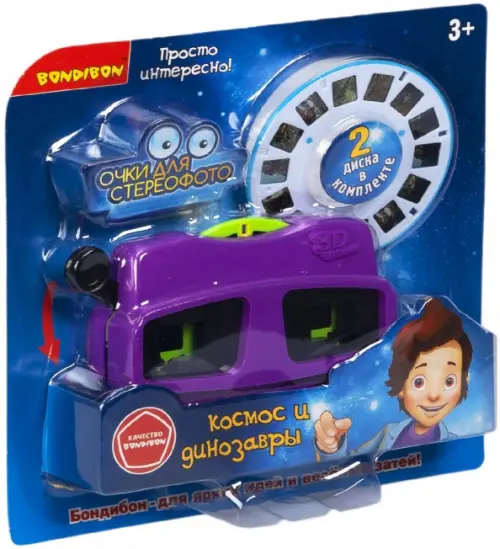 Очки-стереоскоп для просмотра 3D фотографий "Космос и Динозавры" от Bondibon - это очаровательная игрушка в стиле ретро, позволяющая рассматривать объемные изображения. Хотите увидеть 3D динозавров или совершить впечатляющее путешествие в космос? Тогда вам нужны cтереоочки от Bondibon!