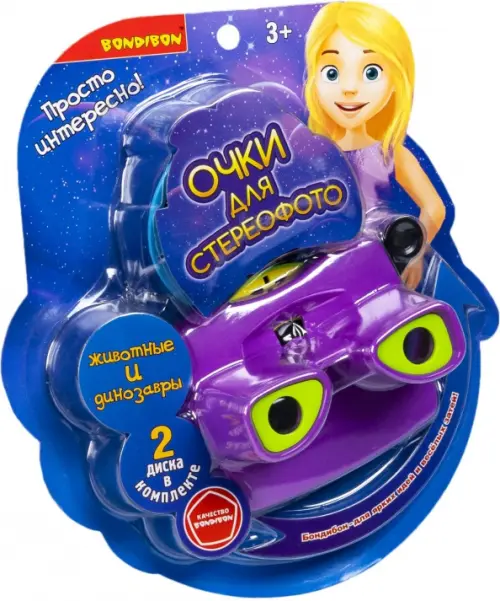 Очки-стереоскоп для просмотра 3D фотографий "ЖИВОТНЫЕ И ДИНОЗАВРЫ" от Bondibon - это очаровательная игрушка в стиле ретро, позволяющая рассматривать объемные изображения. Хотите увидеть 3D динозавров или совершить впечатляющее путешествие в космос? Тогда вам нужны cтереоочки от Bondibon!