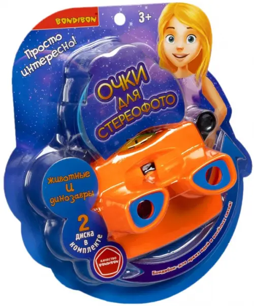 Очки-стереоскоп для просмотра 3D фотографий "ЖИВОТНЫЕ И ДИНОЗАВРЫ" от Bondibon - это очаровательная игрушка в стиле ретро, позволяющая рассматривать объемные изображения. Хотите увидеть 3D динозавров или совершить впечатляющее путешествие в космос? Тогда вам нужны cтереоочки от Bondibon!