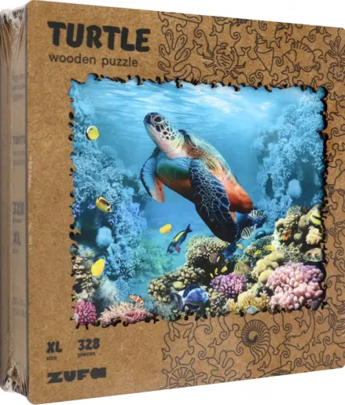 Деревянный пазл с двухслойной крышкой Черепаха, 328 деталей