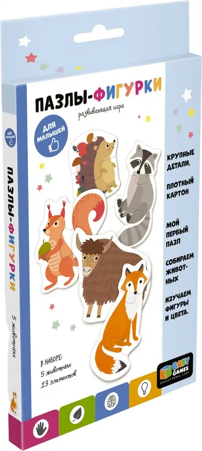 Пазлы-фигурки "Бык и 4 друзей" - это отличный выбор первого пазла для Вашего ребёнка.