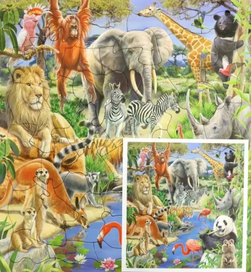 Пазл фигурный на подложке. Дикие животные, 45 деталей