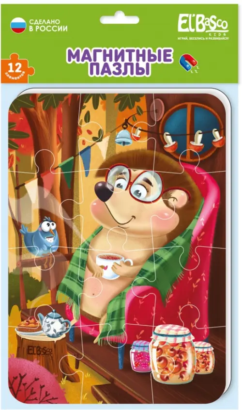 Мягкие магнитные объемные детали из вспененного полимера. Пазлы разделены на 12 элементов. Пазлы легко крепятся к любой металлической поверхности. Размер готового пазла - формат А5.