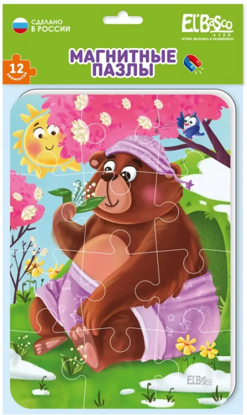 Мягкие магнитные объемные детали из вспененного полимера. Пазлы разделены на 12 элементов. Пазлы легко крепятся к любой металлической поверхности. Размер готового пазла - формат А5.
