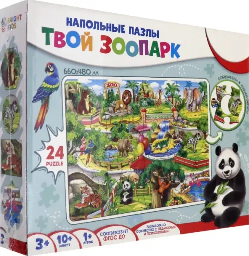 Развивающий напольный пазл, который познакомит малыша с различными животными, которых можно встретить в зоопарке. Этот замечательный напольный пазл поможет провести время с пользой, но весело. Собирая его малыш не только выучит популярных диких животных, но и познакомится с двенадцатью основными геометрическими фигурами, научится соотносить часть и целое, а также будет развивать память, внимательность, усидчивость, мелкую моторику и цветовое восприятие.