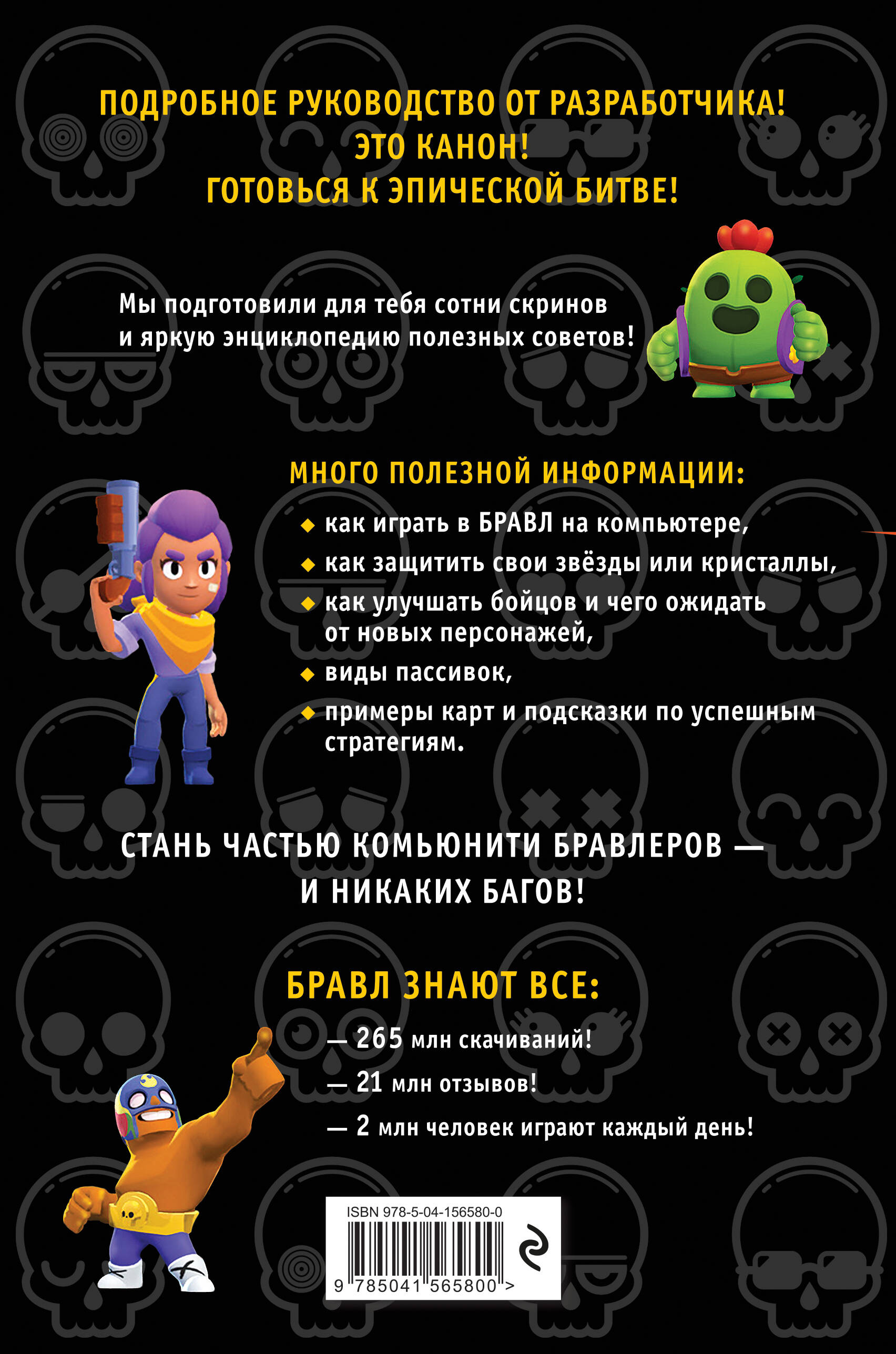 ЭТО КАНОН! ГОТОВЬСЯ К ЭПИЧЕСКОЙ БИТВЕ! Мы подготовили для тебя сотни скринов и яркую энциклопедию дельных советов! «Бравл Старс» - мобильное приложение, которое есть практически на каждом гаджете у современного ребенка. «Бравл» - многопользовательская игра в реальном времени. Много полезной информации: как играть в «БРАВЛ» на компьютере, как защитить свои звёзды или кристаллы, как улучшать бойцов и чего ожидать от новых персонажей, виды пассивок, примеры карт и подсказки по успешным стратегиям. «БРАВЛ» знают все: - 265 млн скачиваний! - 21 млн отзывов! - 2 млн человек играют каждый день!| Издательство | Эксмо |