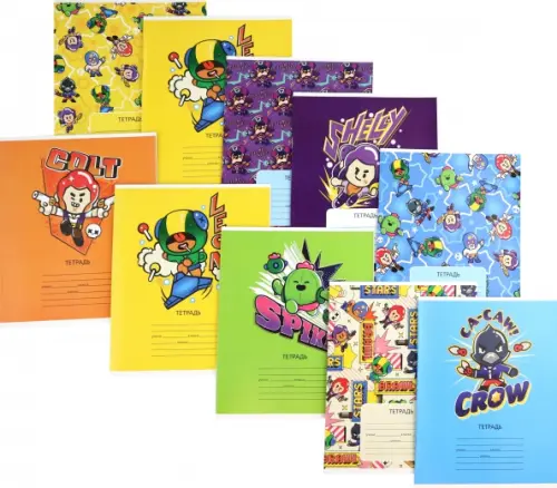 В наборе 10 ярких тетрадей с легендарными героями Brawl Stars - лучший подарок для фаната этой игры.