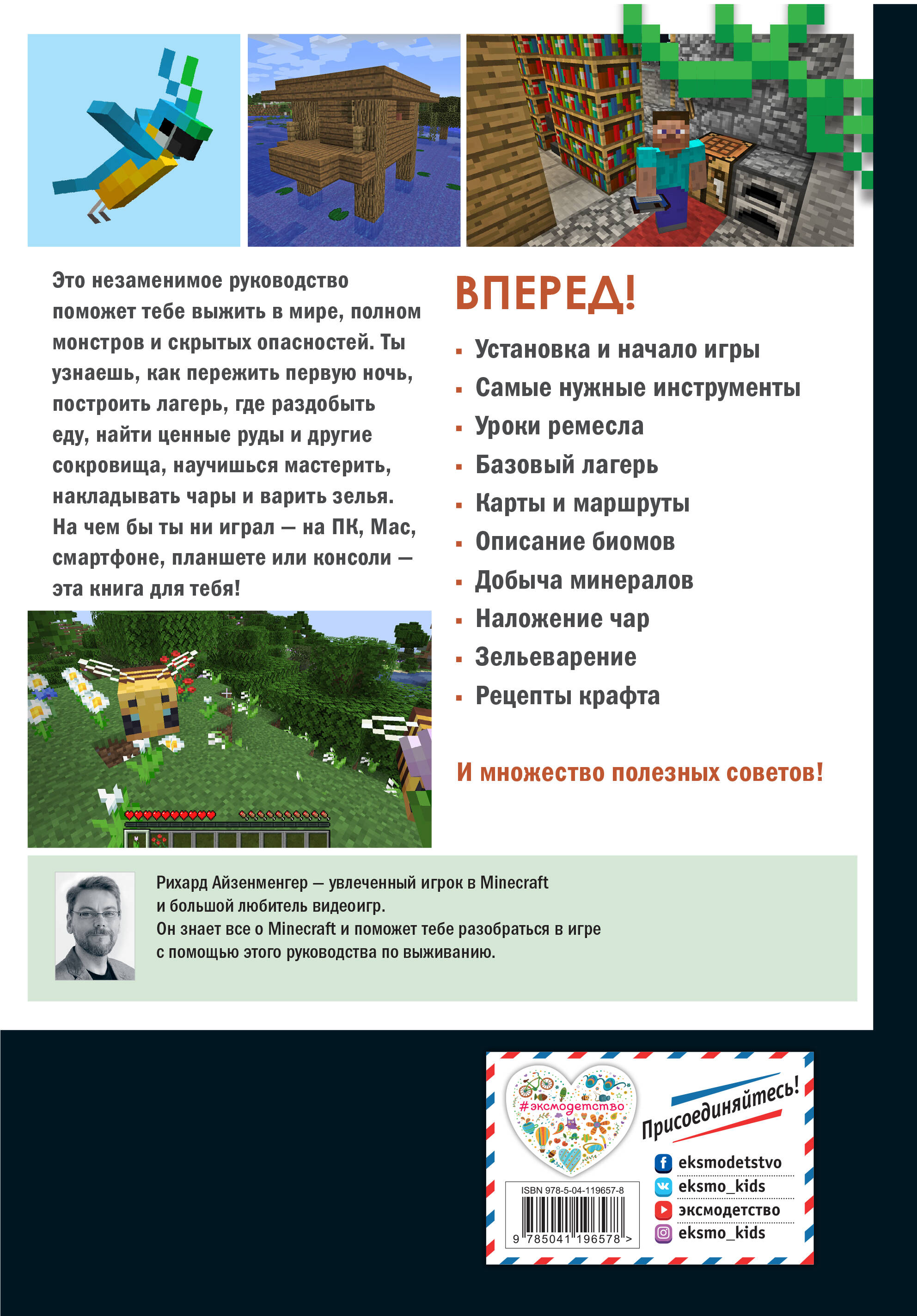 Это незаменимое руководство поможет тебе выжить в мире, полном монстров и скрытых опасностей. Ты узнаешь, как пережить первую ночь, построить лагерь, где раздобыть еду, найти ценные руды и другие сокровища, научишься мастерить, накладывать чары и варить зелья. На чем бы ты ни играл - на PC, Mac, смартфоне, планшете или консоли, - эта книга для тебя! • Установка и начало игры. • Самые нужные инструменты. • Уроки ремесла. • Базовый лагерь. • Карты и маршруты. • Описание биомов. • Добыча минералов. • Наложение чар. • Зельеварение. • Рецепты крафта. И множество полезных советов!| Издательство | ООО "Издательство "Эксмо" |