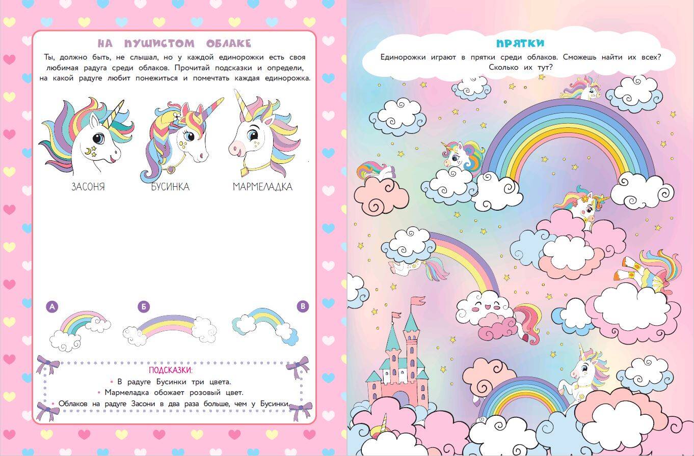 Погрузись в мир радуги! Жизнь единорожек полна забавных приключений - присоединяйся! Без тебя им не справиться - помогай волшебным созданиям проходить лабиринты, искать отличия, находить лишнее, разгадывать судоку, искать потерявшиеся слова, подбирать недостающие детали пазлов и многое-многое другое. В книге собраны самые интересные и полезные головоломки - время в мире радуги пролетит весело, а ты прокачаешь свой мозг и полезные навыки - станешь супервнимательным и сообразительным героем. А ещё ты на славу повеселишься! Не время скучать - скорее открывай сборник головоломок и присоединяйся к волшебным приключениям где угодно - книжку очень удобно носить собой. В сборнике собрались самые милые и очаровательные единорожки, а яркие полноразмерные иллюстрации позволят без остатка погрузиться в незабываемые приключения в радужном царстве!| Издательство | ООО "Издательство "Эксмо" |