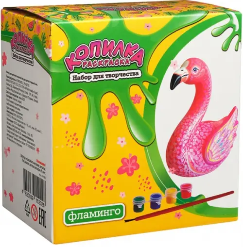 Эта копилка в виде изящного фламинго отлично дополнит интерьер с комнатными растениями. Пусть ребенок проявит фантазию и раскрасит фламинго яркими цветами! Инструкцию по смешиванию цветов вы найдете на обороте упаковки. Такую копилку не нужно разбивать - она сделана из пластика. Чтобы достать накопления, просто открутите крышку внизу копилки.