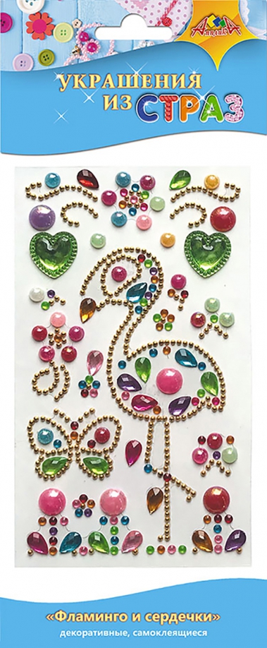 Украшения из страз "Фламинго и сердечки"