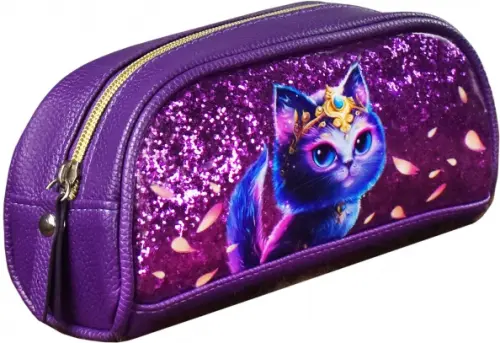 Пенал школьный Феникс+, арт.64177/ 24 ВОЛШЕБНЫЙ КОТ (без наполнения, 20х9.5х7.5 см, искусственная кожа, молния, глиттерный ПВХ, сублимационная печать, ПЭТ-пакет).