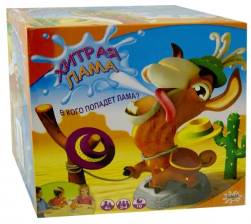 В наборе: вертящаяся плюющаяся лама, 12 шляп (3 красных, 3 желтых, 3 зеленых, 3 фиолетовых), катапульта, инструкция.