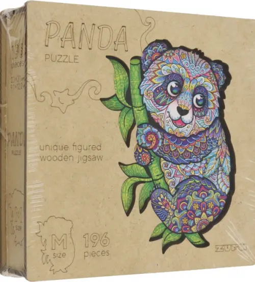 Деревянный пазл с двухслойной крышкой Панда, 196 деталей