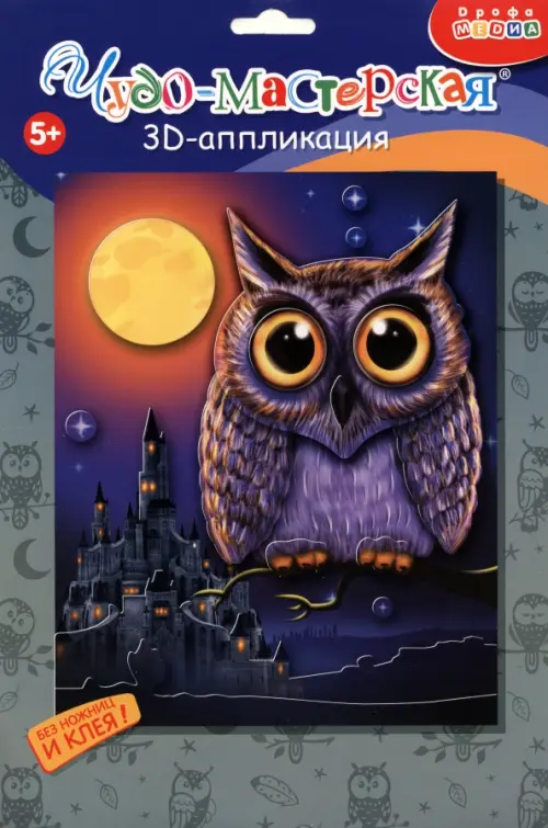 3D-аппликация - современный и очень увлекательный вид творчества. Данный набор позволит создать необыкновенно выразительную 3D-картину. Яркие и красочные детали изображения, выполненные из плотного картона, выступают над основой, создавая причудливый и сказочный мир. Этот удивительный 3D-эффект возникает благодаря использованию объёмного двустороннего скотча. Готовое изделие смотрится необыкновенно эффектно.