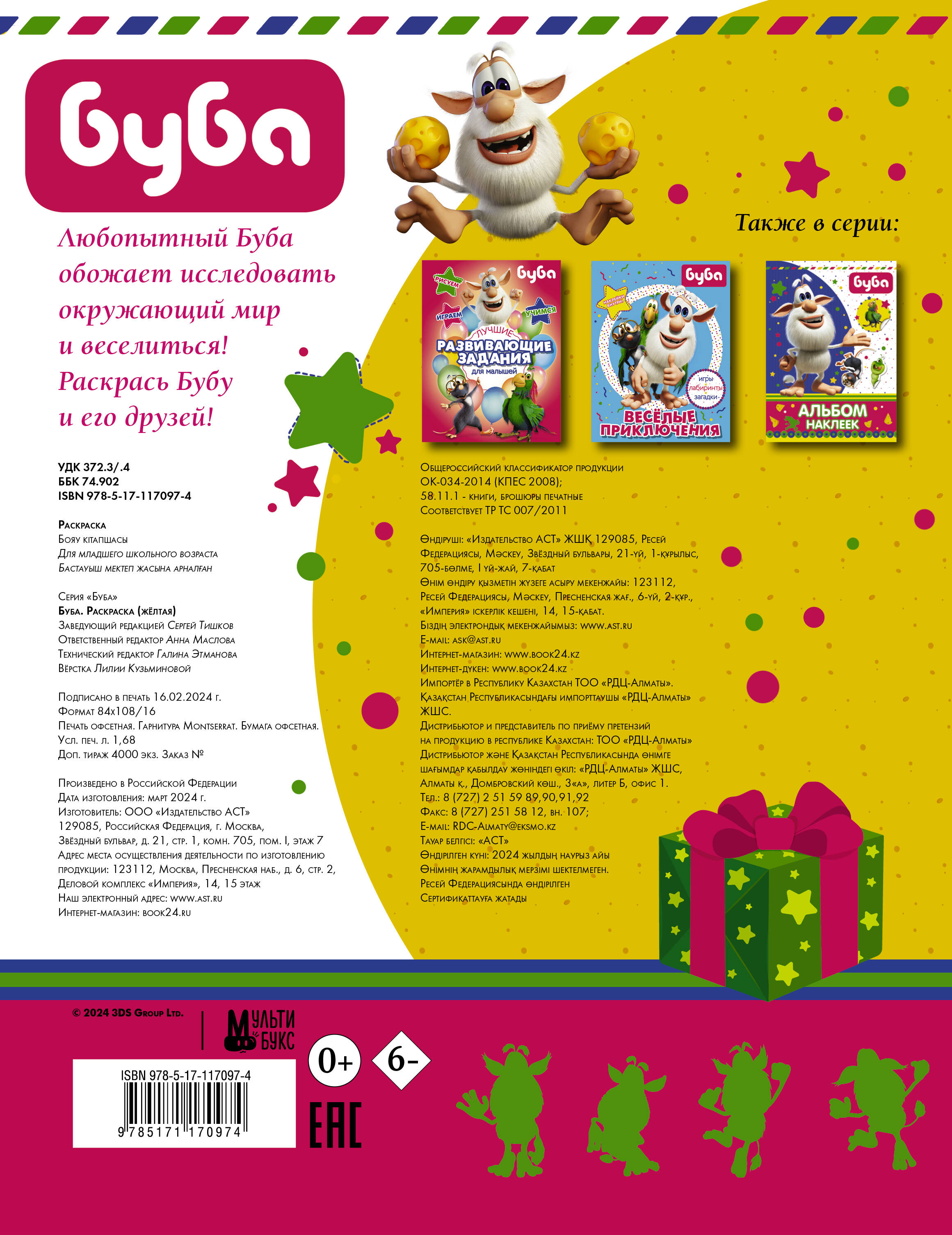 Любопытный и забавный Буба обожает исследовать окружающий мир и веселиться! Раскрась Бубу и его друзей!| Издательство | ИЗДАТЕЛЬСТВО "АСТ" |