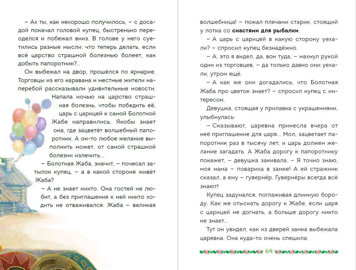 Лучший способ научиться читать - делать это с любимыми героями! Эта книга - прекрасное подспорье для юного читателя, который только начинает свой самостоятельный путь в увлекательном мире чтения. Ведь на этом непростом пути ему помогают герои любимых мультфильмов - Царевны! В этой истории ребёнку предстоит вместе с царевной Василисой остановить Бабу Ягу, спасти царство и загадать волшебному папоротнику самое правильное желание. А по пути юный читатель сможет легко и с удовольствием развить свои навыки чтения, ведь здесь его ждут: - вопросы на понимание текста с повышением уровня сложности; - возможность поставить себе оценку за чтение после каждой главы; - словарик новых слов; - большой тест по книге, который поможет оценить свой прогресс; - трекер чтения, чтобы отслеживать ежедневные достижения; - потрясающие иллюстрации, которые помогают глубже нырнуть в историю. Пусть время, проведённое с книгой, станет для ребёнка лучшей частью дня, полезной и весёлой. Добро пожаловать в увлекательный и волшебный мир чтения!| Издательство | ООО "Издательство "Эксмо" |