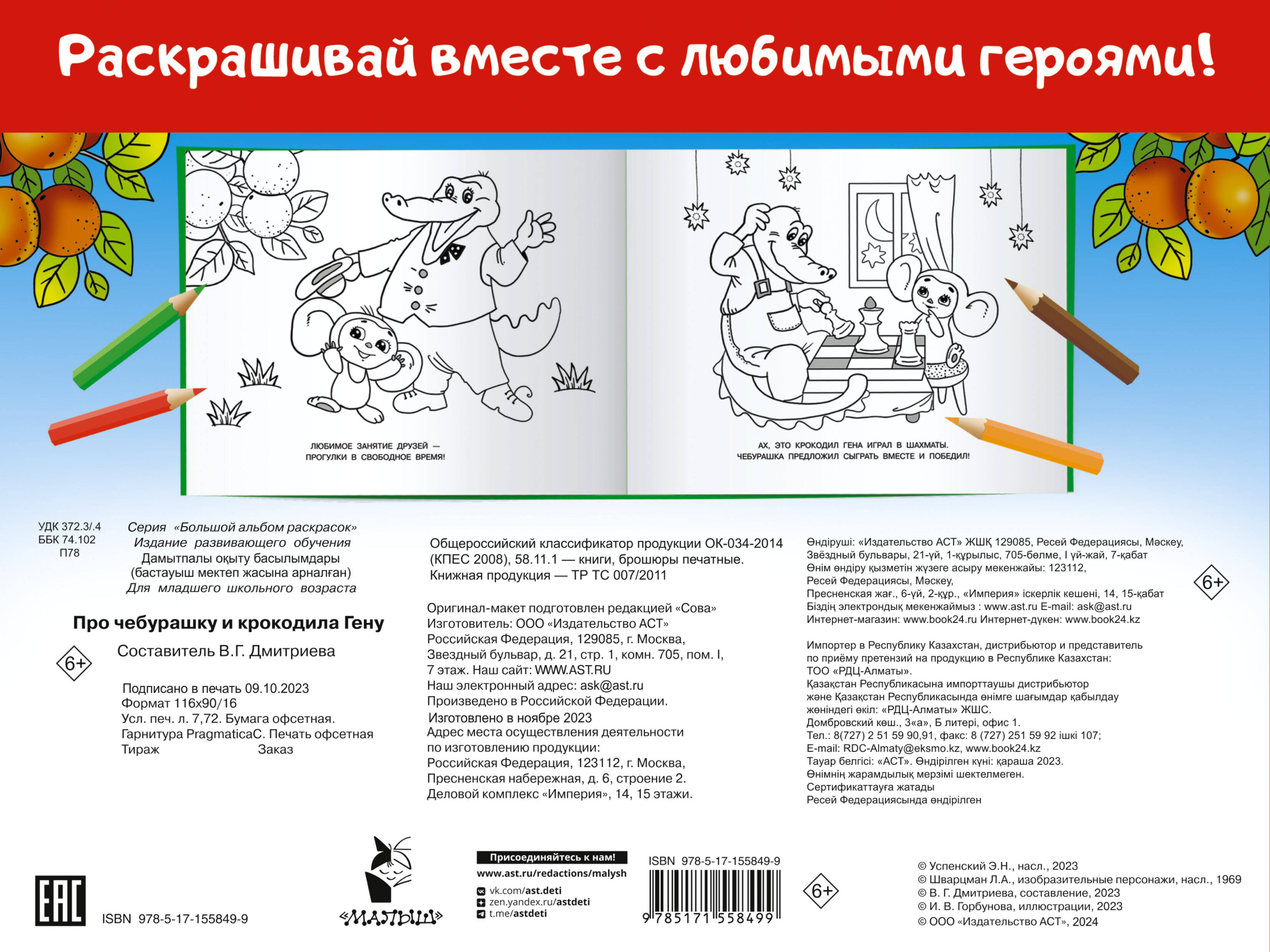 Ребёнок любит читать сказки Э. Успенского? Или ему нравится раскрашивать? Может быть, малыш смотрел фильм про Чебурашку? На самом деле все эти увлечения можно объединить одной весёлой раскраской - «Про Чебурашку и крокодила Гену». Вместе с любимыми героями юный художник отправится в настоящее приключение! Под обложкой 64 замечательных рисунка. Рядом с каждой картинкой - небольшой текст, поясняющий сюжет раскраски. Занимаясь по такой книге, ребёнок разовьёт мелкую моторику, внимание и воображение, подготовит руку к письму, станет более аккуратным. Но самое главное - юный художник проведёт время с любимыми героями!| Издательство | ИЗДАТЕЛЬСТВО "АСТ" |