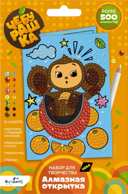 Открытка с очаровательным Чебурашкой в формате "укрась и подари" подарит радость и веселье самым близким! Страз в комплекте оживят красочную иллюстрацию ярким блеском. Творчество-антистресс поможет расслабиться и забыть о повседневных заботах. Процесс создания позволит улучшить мелкую моторику рук и станет интересным хобби для взрослых и детей. Уютный подарок и медитация 2в1! В наборе: открытка с клеевой основой 15x10, стразы, тарелочка, карандаш-стилус из дерева. Не предназначено для детей младше 3 лет.