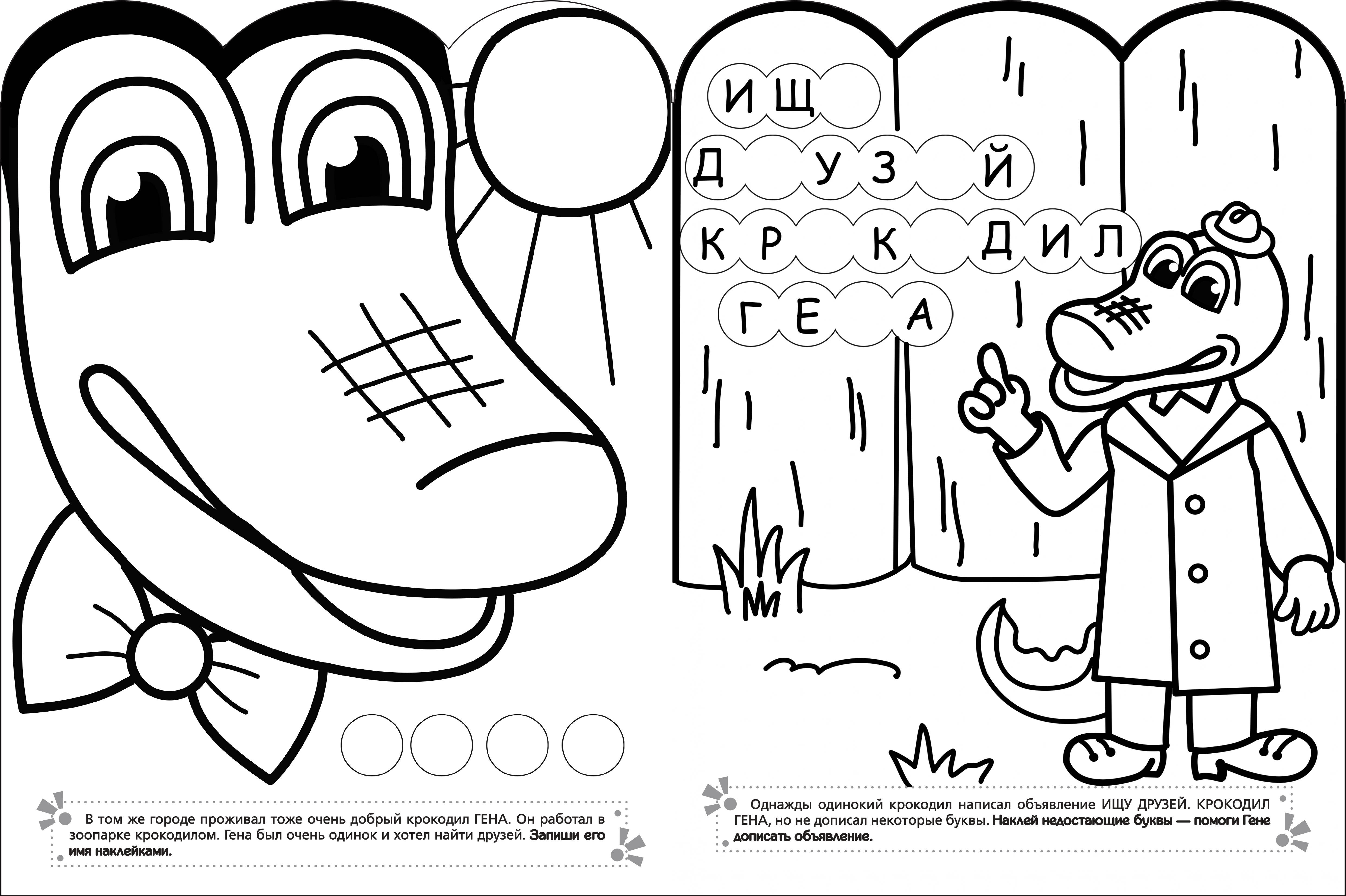 Участвуй в сказке! Рассказ-раскраска с развивающими заданиями и наклейками для малышей 3-6 лет. Для всех поклонников милого Чебурашки и его зелёного друга Гены. 1. Раскрась Чебурашку и его друзей 2 Послушай историю появления ушастого зверька и его дружбы с добрым крокодилом 3. Поучаствуй в сказке - дополни картинку наклейками и помоги героям составлять слова из букв.| Издательство | ИЗДАТЕЛЬСТВО "АСТ" |