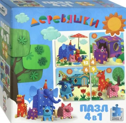 Забавные деревянные животные приглашают тебя посетить их волшебный мир! Окунись в страну Деревяшек, собрав пазлы из 4, 6, 9 и 12 элементов.
